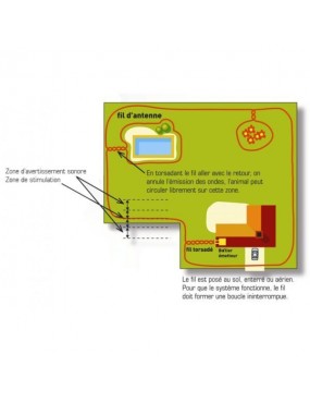 Lorsque votre chien, équipé d’un collier récepteur, s’approche du fil d’antenne, il est prévenu par des avertissements sonores qu’il se trouve trop près d’une zone qui lui est interdite.