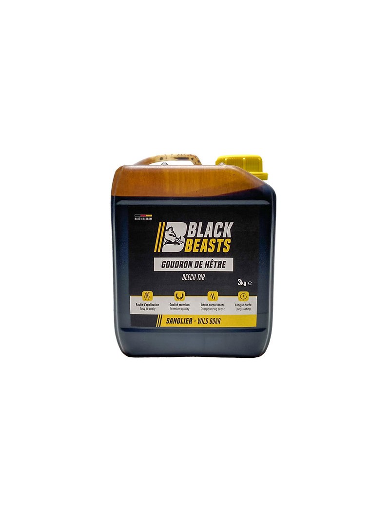 Le goudron végétal Black Beasts® est fabriqué à partir de bois de hêtre. Cette essence d’arbre est particulièrement appréciée par les sangliers pour son odeur très forte et persistante. De plus, le hêtre possède des propriétés naturelles antiseptiques et fongicides aidant l’animal et le tronc sur lequel le goudron est appliqué, à lutter contre la prolifération de parasites.