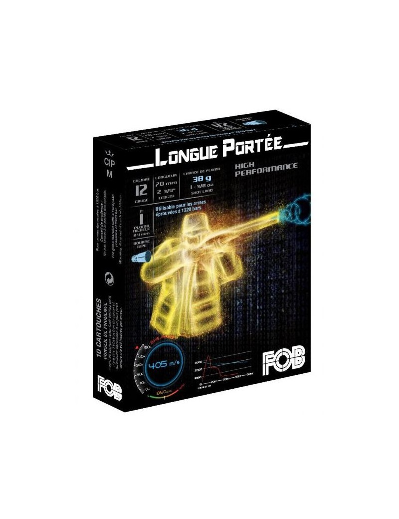 Les cartouches à plomb FOB Longue Portée HP se révèlent capables d’atteindre la grande vélocité de 405 m/s à la bouche du canon.