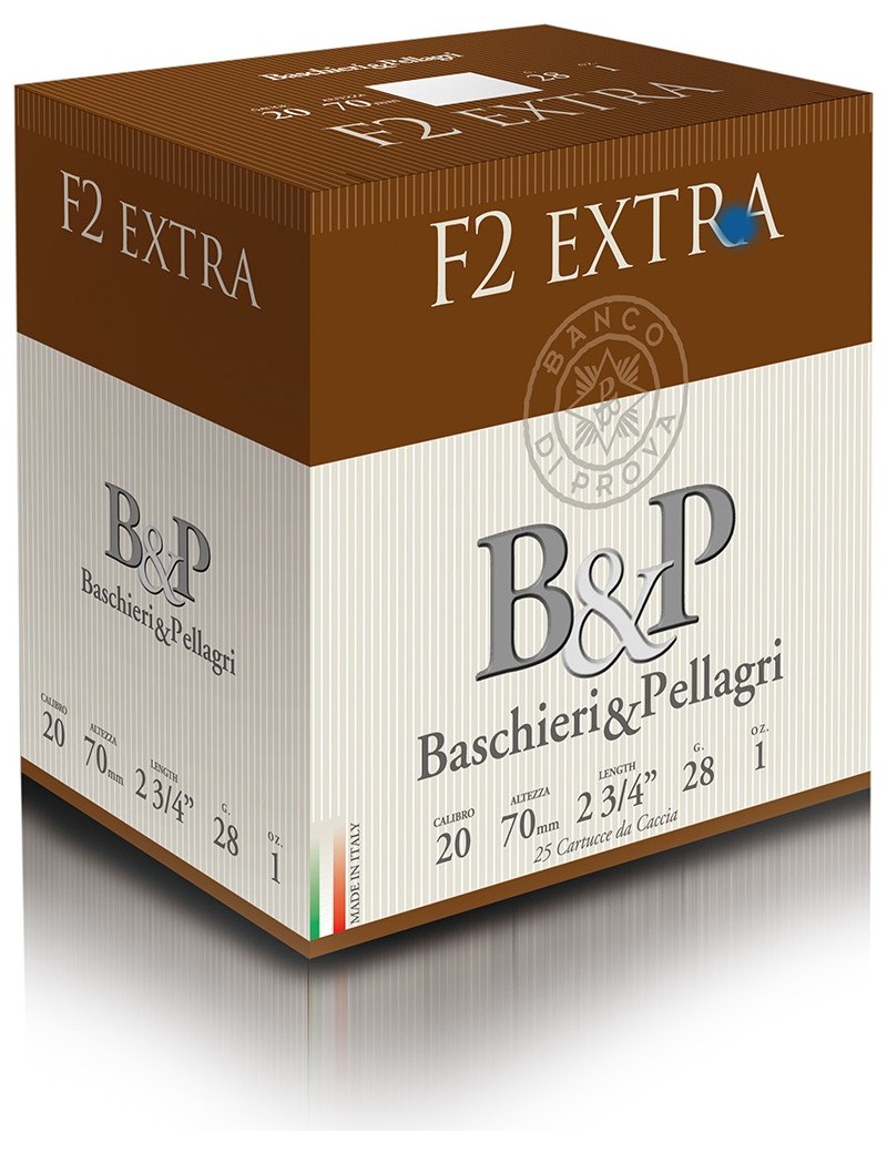 Avec sa bourre jupe à godet et sa charge de 36 grammes de plombs extra-durcis N°4 ou 6, la cartouche de chasse F2 Extra de Baschieri & Pellagri est le parfait compromis charge moyenne / grande vitesse / faible recul recherché par beaucoup de chasseurs qui veulent une cartouche bourre à jupe, rapide et douce, pour les tirs de moyenne et longue portée.