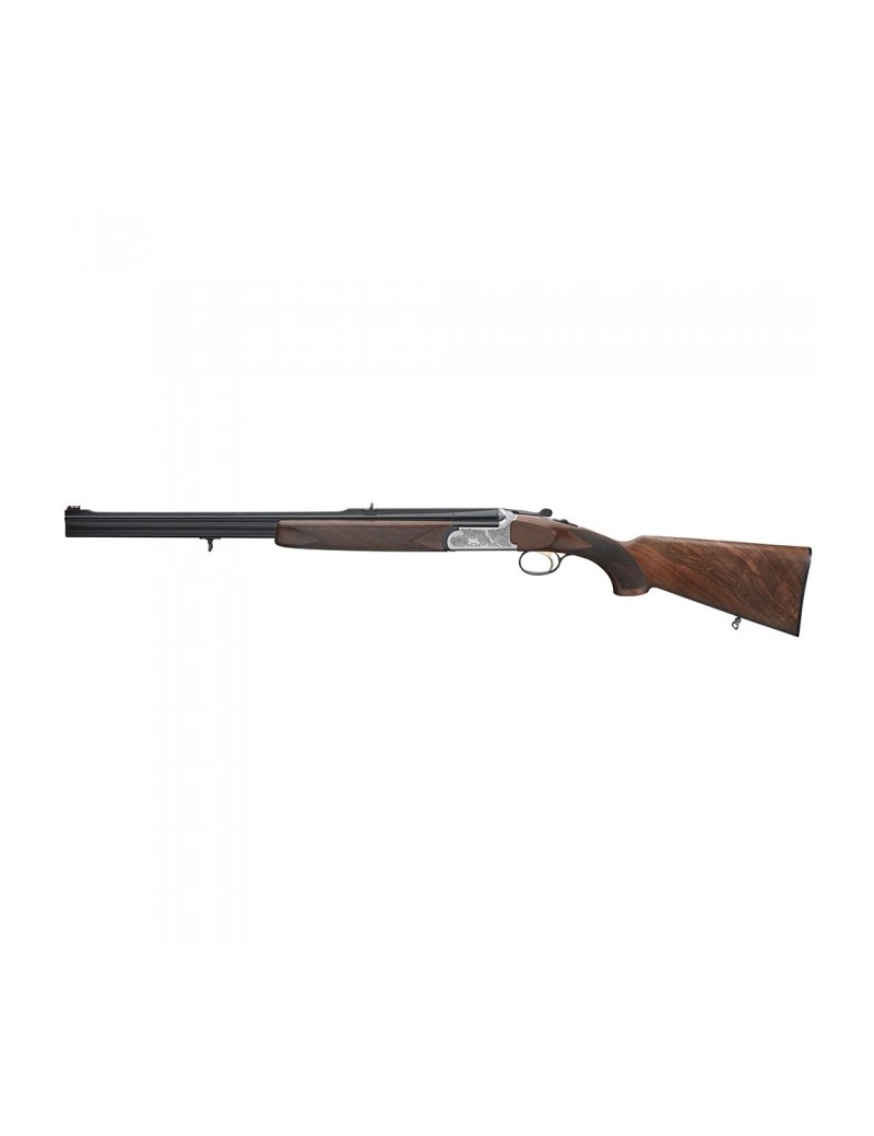 Carabine double Express 190 Sabatti. Express Sabatti 190 verrouillage bascule canons par large verrou et crochet encastré dans la bascule, finition argent, gravure grande chasse. Canons de 60cm, bande avec hausse,mono détente, guidon lumineux.