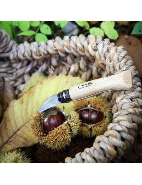 Son manche en châtaignier est unique dans la collection Opinel, c'est un bois clair et joliment veiné issu de forêts françaises.
