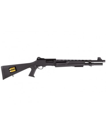 Présentant un profil de rayure hélicoïdal, le canon de 60 cm arbore fièrement le poinçon à la fleur de lys attestant de sa compatibilité avec les munitions à billes d’acier bien que les rayures se prêtent davantage au tir à balles. L’on notera la présence d’un frein de bouche à la dispersion omnidirectionnelle des évents pour une meilleure stabilité au tir et une touche résolument tactique.