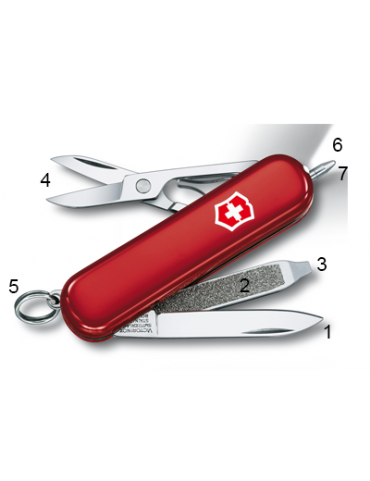 Ce couteau suisse Signature Lite RED est muni d'une apparence extrêmement moderne de part son manche rouge avec en guise de décoration le logo Victorinox. Canif onglier oblige, il mesure 58mm de longueur : une très petite taille qui permet de glisser votre Signature Lite où vous le désirez sans contrainte. Et autant dire que même dans votre poche ou accroché en porte-clés il ne vous alourdira pas : il ne pèse que 24 grammes. Léger et compact, le Signature Lite est un couteau suisse hyper-transportable et au combien polyvalent.