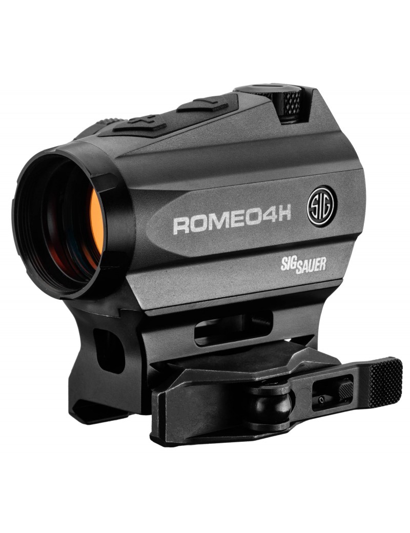 Le viseur point rouge ROMEO 4H de la marque Sig Sauer dispose de deux montages pour rail picatinny avec ouverture rapide, un modèle haut et un bas. Equipé du système MOTAC (Motion Activated Illumination), ce viseur s'éteindra automatiquement après 120 secondes d'immobilité. Au moindre mouvement, celui-ci se rallumera en conservant les derniers réglages. Ce système donne une autonomie de la pile CR2032 de 50 000 heures. Réglable en dérive et en hauteur, le Sig Sauer ROMEO 4H est équipé d'origine de deux protège lentille transparente qui permettront un tir d'urgence. Ce viseur point rouge conviendra parfaitement aux carabines semi-automatiques mais également aux fusils en calibre 12 ou encore aux armes de poing. Très polyvalant le Sig Sauer ROMEO 4H comblera les tireurs les plus exigeants.
