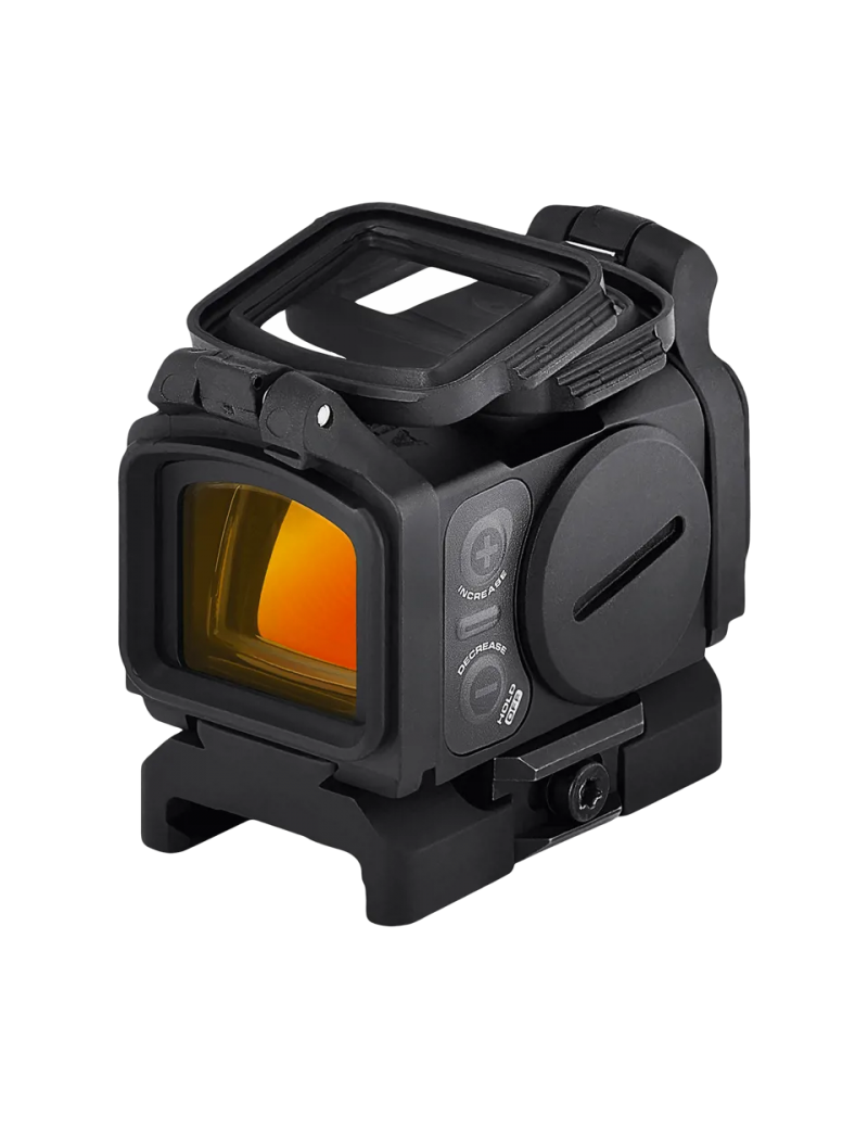 Ce modèle ACRO C-2 est livré avec une monture fixe de 22 mm pour Weaver / Picatinny et protège-lentilles rabattables.
